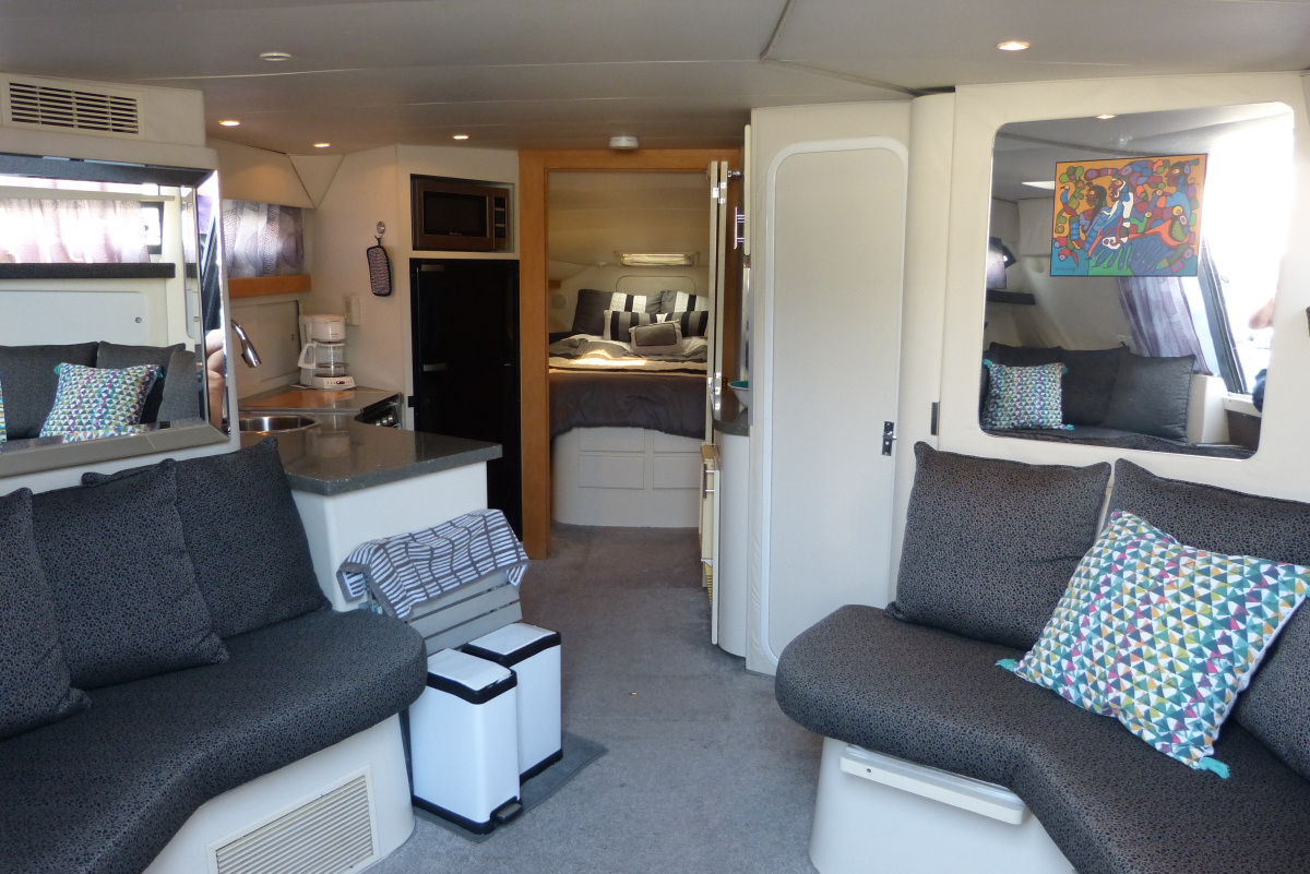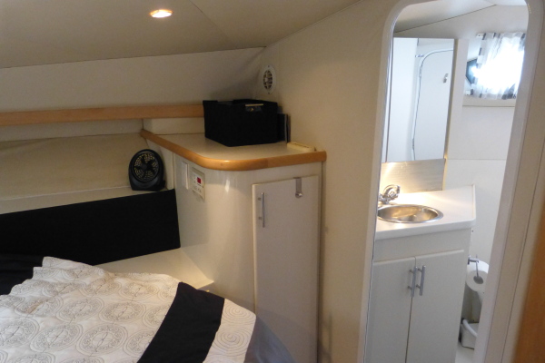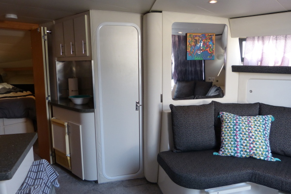 ![]() Starboard Sofa Converts to Double Berth with Privacy Curtain |